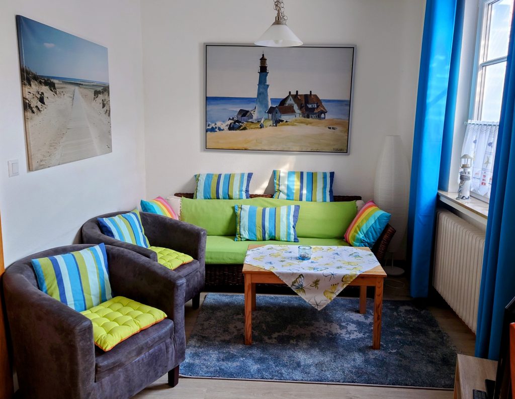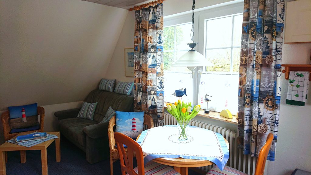 - FEWO 2 liegt im 1. OG verfügt über ein Schlafzimmer einen Wohnbereich mit Küchenzeile, ein Duschbad sowie ein separates WC